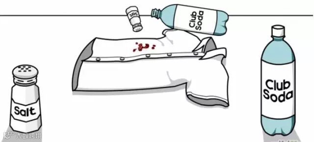 手边既有盐又有苏打水的话,撒完盐后不要干等着,继续上苏打水!1小时后,把全部盐刷干净,同时吸干多余的液体,彻底清除酒渍的几率会更大一些。