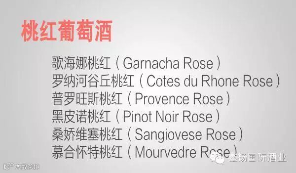 可以说,桃红葡萄酒是红葡萄酒和白葡萄酒的中和点,不过有时候更像白葡萄酒。桃红葡萄酒通常呈干型。桃红葡萄酒在地中海地区、法国南部、西班牙和意大利都十分受欢迎。