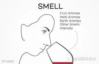 嗅觉的运用在品尝中非常重要,它对香气的捕捉分析比味觉还要多。在酒倒入杯中静止下来以后就可以进行初次闻香,然后是摇杯再次闻香(结合视觉)。好的品尝者在进行了视觉和嗅觉对酒的认识以后,基本上已经可以确定了酒的特征质量。