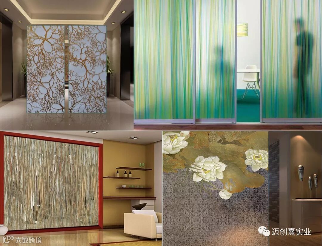 内嵌装饰件(金属网、金属板等)夹层玻璃、内嵌PET材料夹层玻璃等装饰及功能性夹层玻璃。