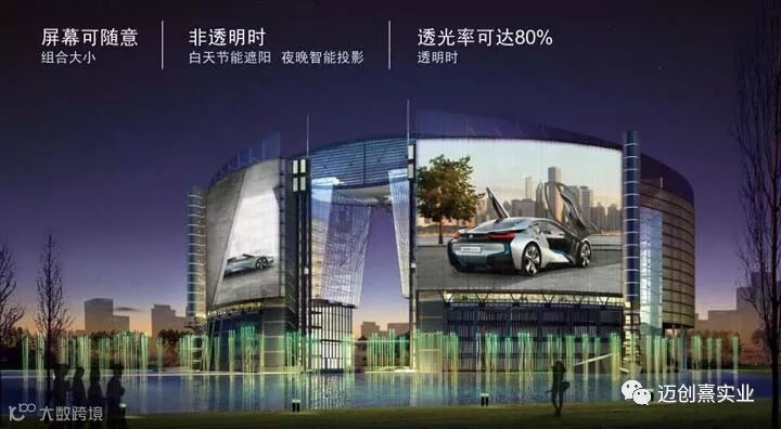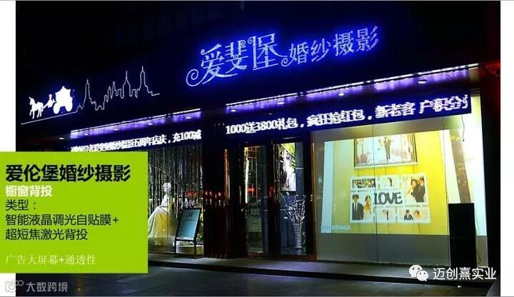 功能:1、兼具屏幕,透明玻璃,不透明隔断于一身,结合超短焦 激光背投投影仪,可实现广告投放,是新型的投影方式。