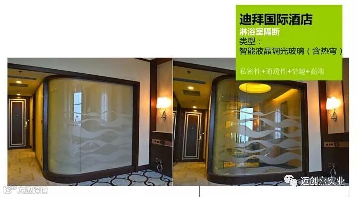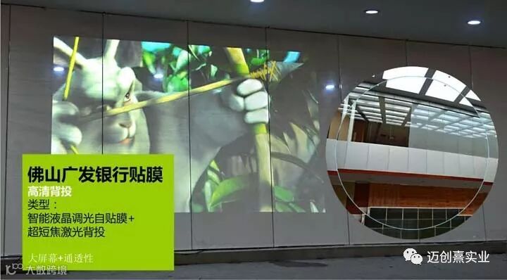 特性:透明、雾化灵活切换;结合投影仪,使其变为显像屏幕