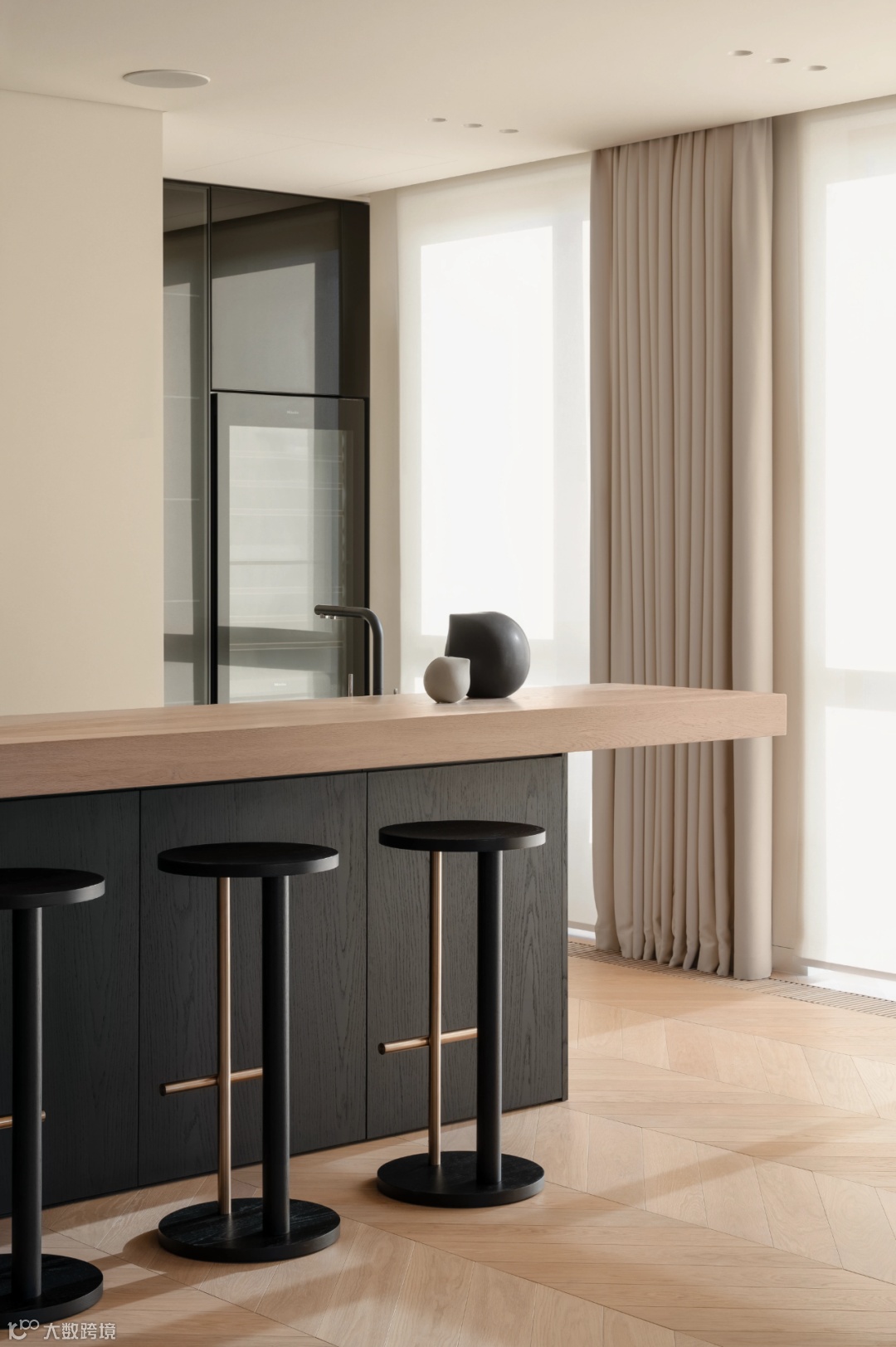 空间布局上,遵循“简约不简单”的原则,合理划分功能区域,兼顾实用性与通透性。从图片中能清晰看到,客厅以大面积原木材质打造地面与背景墙,搭配简约软装,没有多余的装饰元素,却能通过材质的质感与光影的变化,营造出温柔又高级的空间氛围;餐厅与厨房衔接流畅,原木色餐桌与整体风格呼应,搭配简约餐具,正如图片所呈现的,让日常用餐也成为一种享受;卧室延续整体调性,原木床头搭配简洁软装,弱化多余装饰,聚焦睡眠的舒适本质,图片中柔和的色调的搭配,更能让每一位居住者都能卸下疲惫,感受家的温暖。