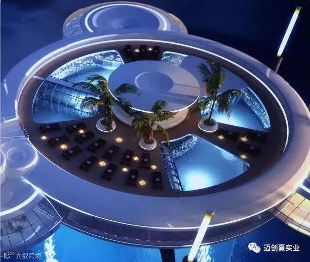 这是整个海底酒店的外观图,看起来很像飞碟。