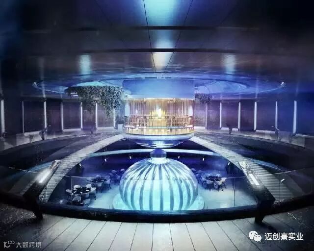 迪拜海底酒店的设计图。酒店大厅位于一个巨大的游泳池的中心。