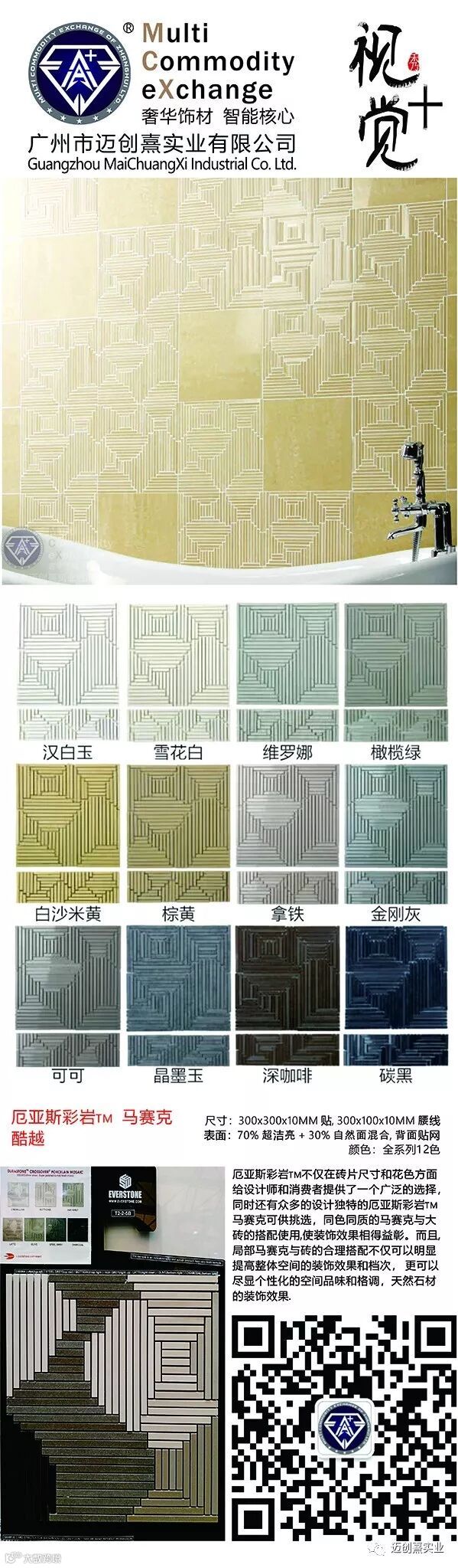 产品设计的个性和功能体现, 同一花色有多达6个表面选择, 突出体现个性化和人性化的现代产品理念. 充分满足现代设计师所追求的主色调支配下的不同区域的色调匹配和功能组合.