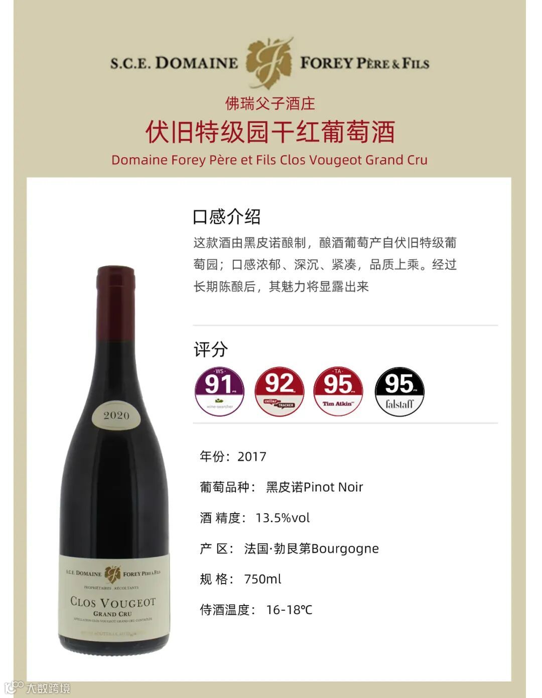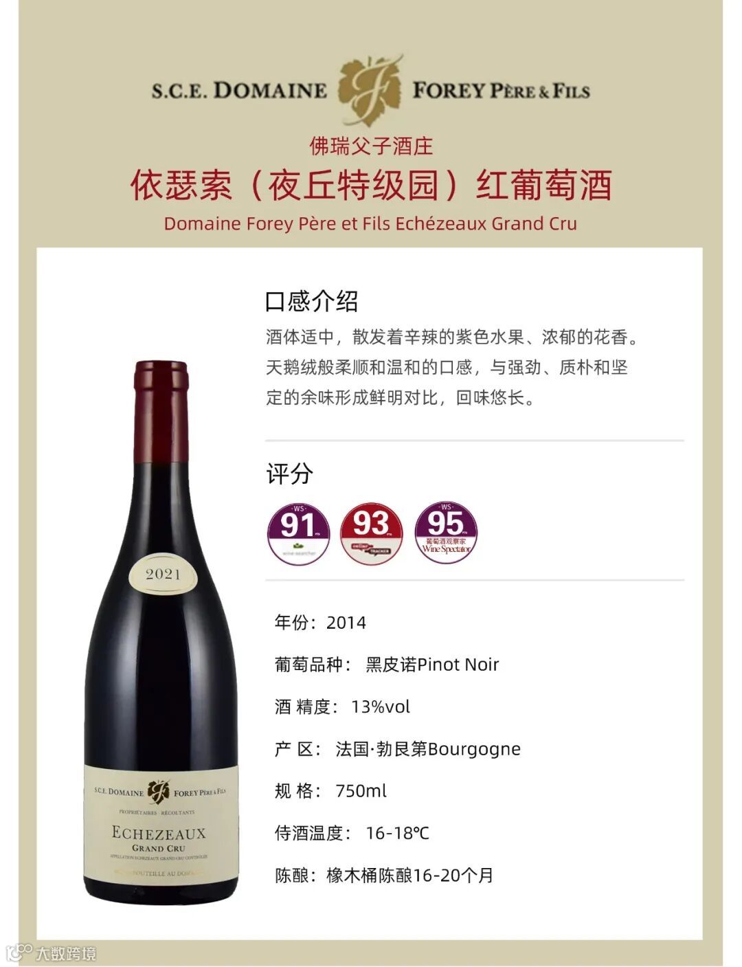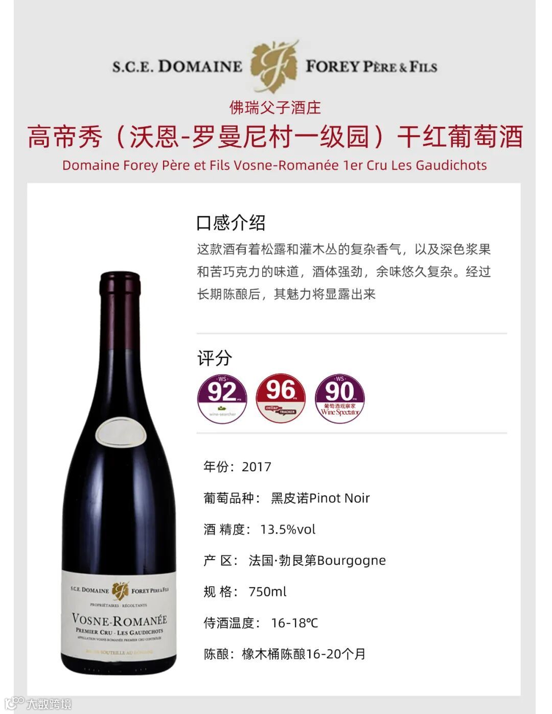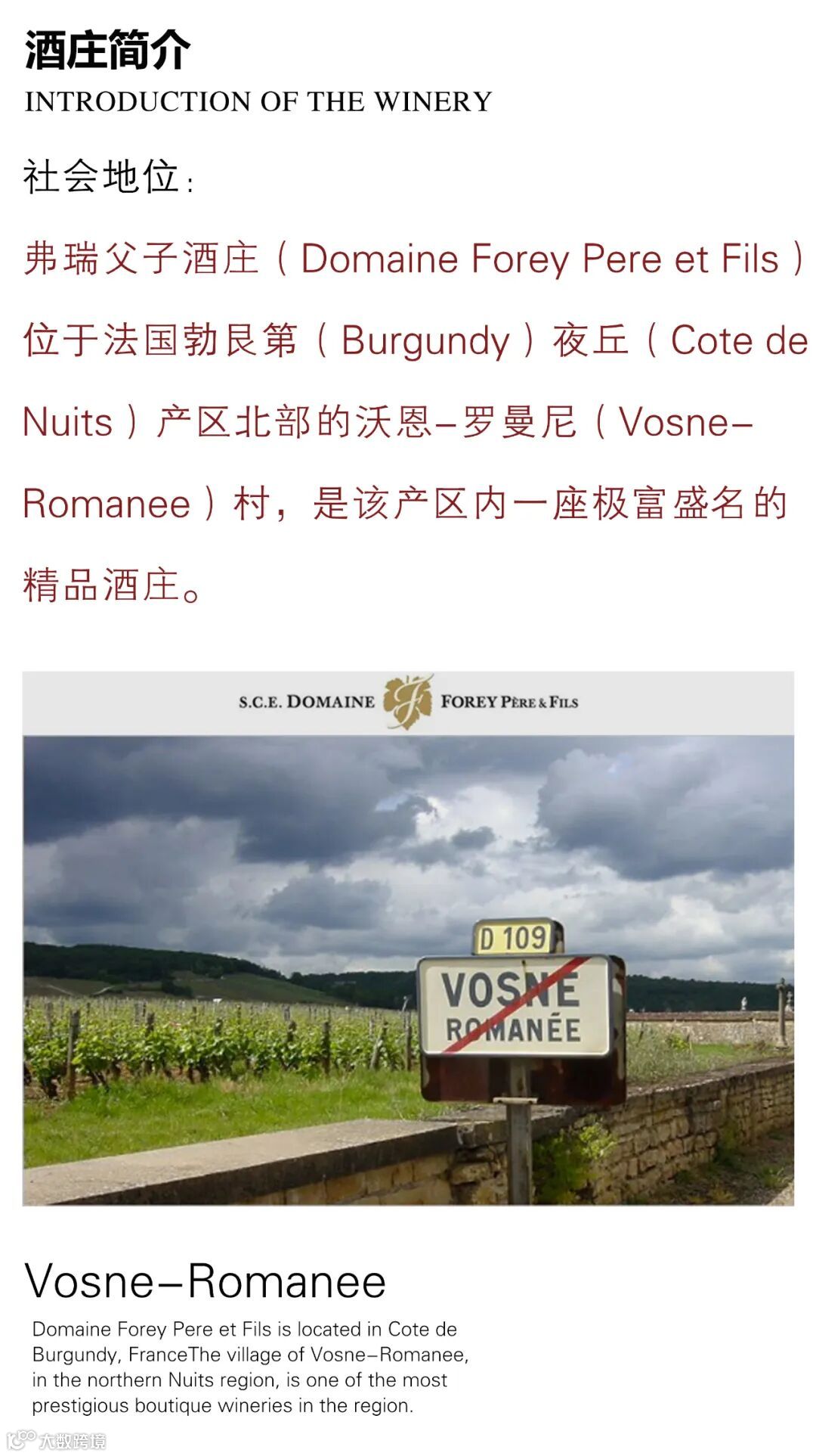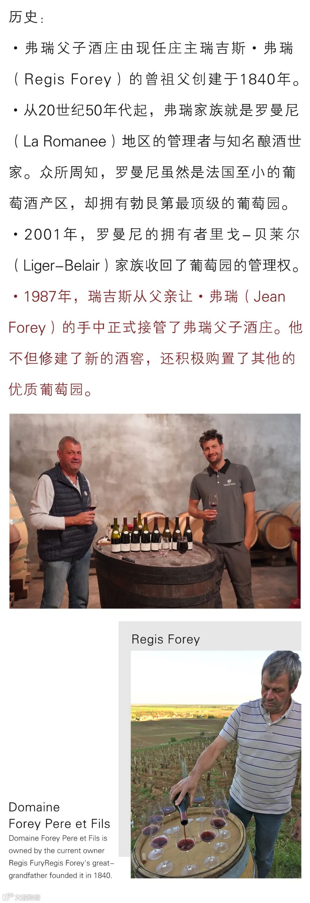 导读:·弗瑞父子酒庄(Domaine Forey Pere et Fils)位于法国勃艮第(Burgundy)夜丘(Cote de Nuits)产区北部的沃恩-罗曼尼(Vosne-Romanee)村,是该产