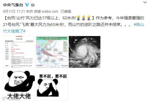 “山竹”最大风力已超过“飞燕”