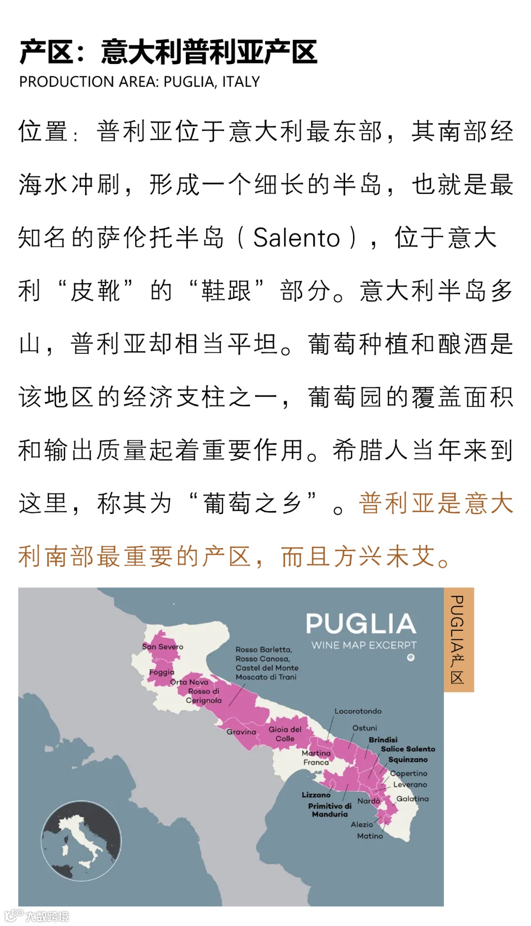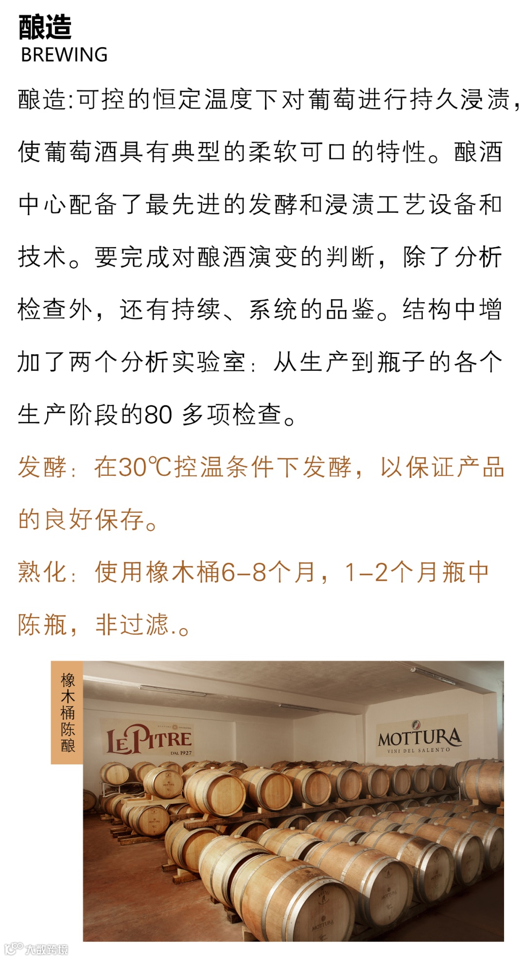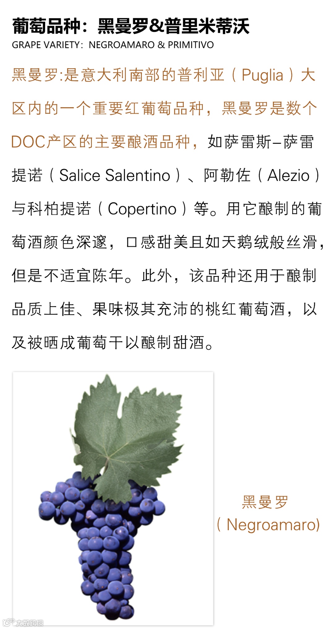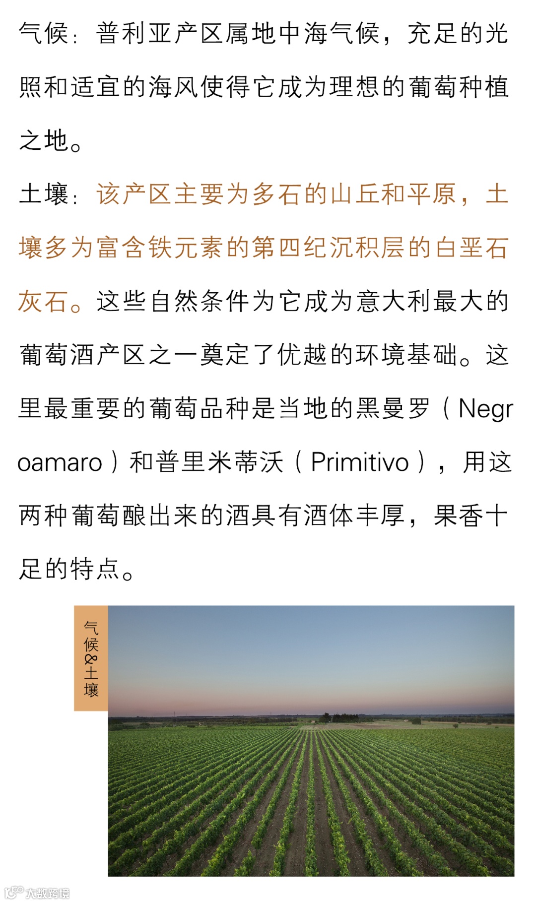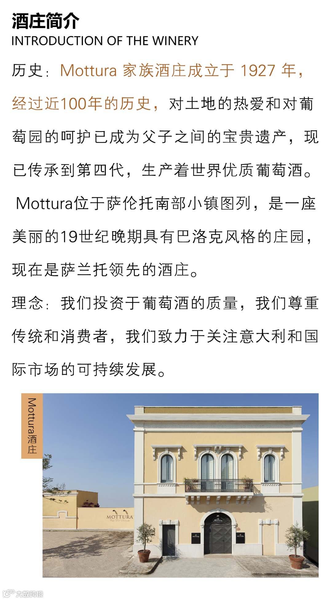 导读:普利亚最大的家族传承百年酒庄古老的传统工艺,现代性与其根源的相结合代表作IGC国际葡萄酒及烈酒大奖赛铜奖