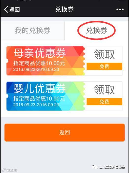 点击“优惠券”并根据需要领取“母亲优惠券”或者“婴儿优惠券”。