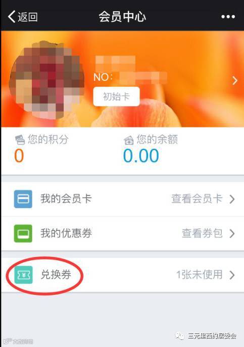 首次进入会员卡页面需点击“初始卡”位置选项进行注册。完成注册后点击“兑换券”领取医疗优惠券。