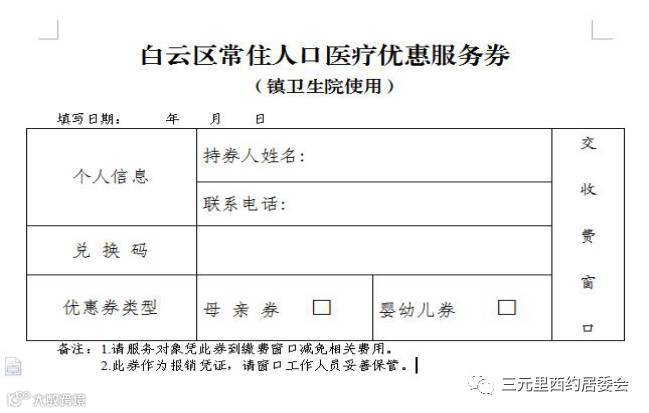 验证成功后,凭医疗工作人员开具的《白云区常住人口医疗优惠服务券》前往挂号处或收费处减免挂号费及诊金。