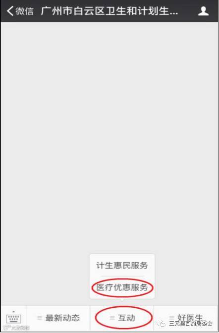进入公众号首页并点击下方“互动”中的“医疗优惠服务”