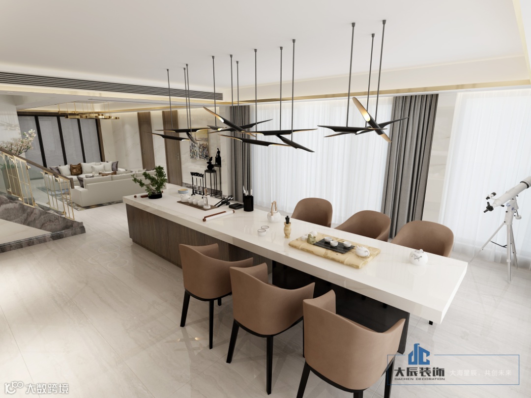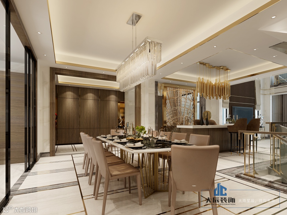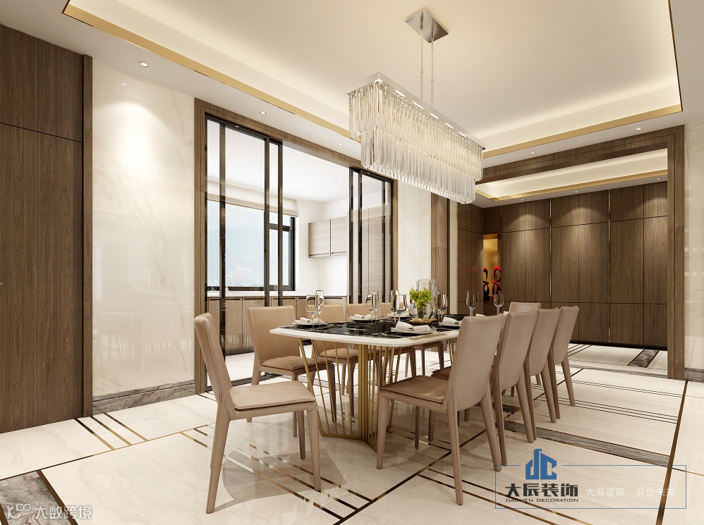 点缀四季三餐的温馨气息。作为点睛的吊灯,使得空间高贵精致感油然而生。