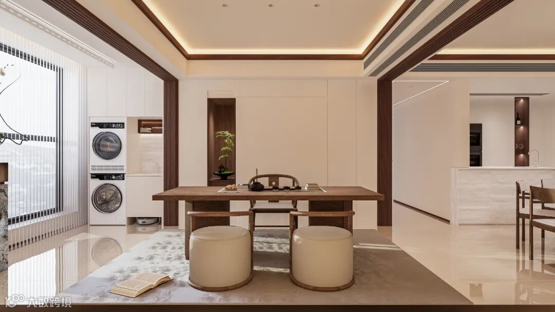 意境贯通:宋式美学的元素,如木质肌理、素雅色彩、框景手法,被巧妙运用于各个空间,确保了风格与意境的整体统一。