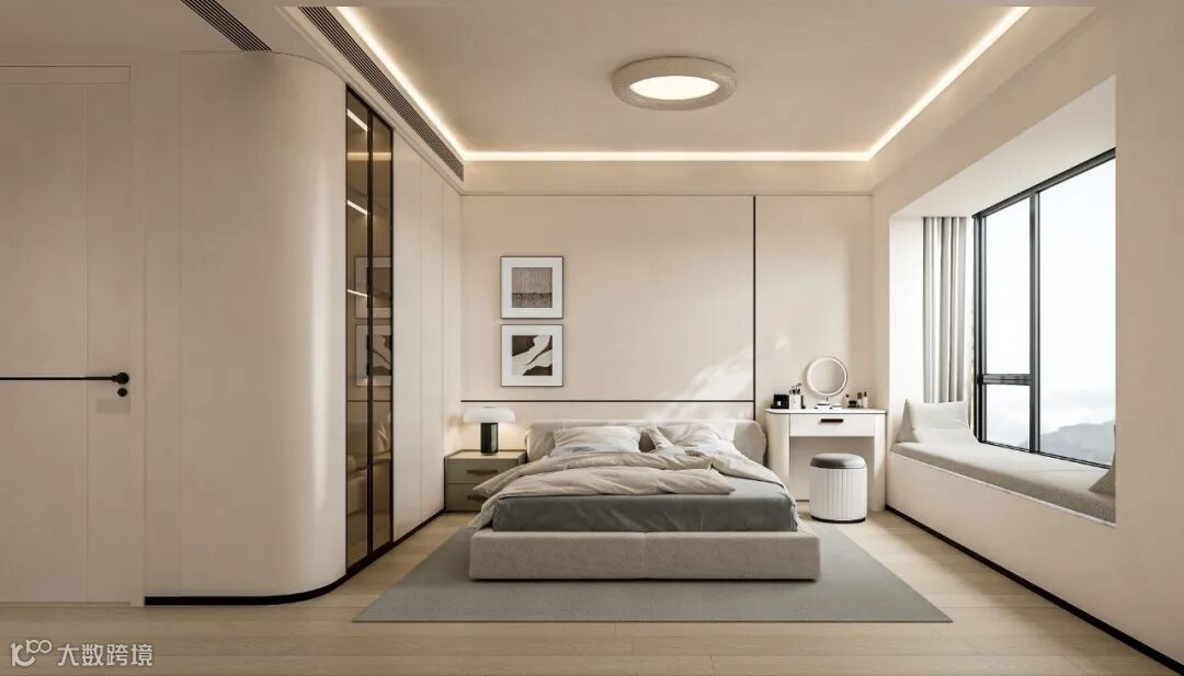 融合与分区:公共区域完全打开,形成宽敞的家庭核心区;私人休息区域则保持独立与安静,实现 “动与静”的完美平衡。