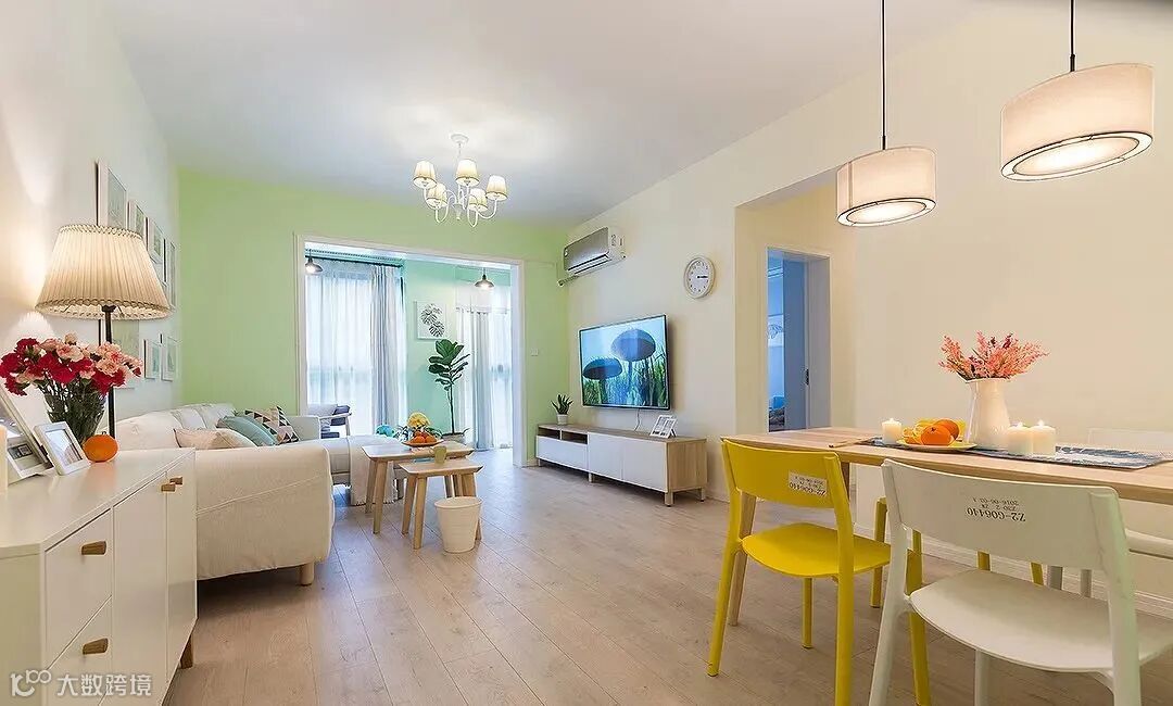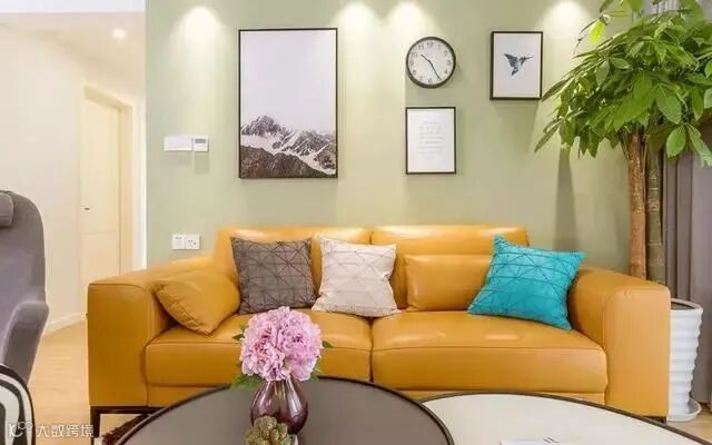 自然主题的家居搭配令人无拘无束,绿色的墙面能给家中注入清新的气息,让人心生愉悦。黄色是一种清新、鲜嫩的颜色,美得浑然天成,这样的墙面配色能让心情瞬间变得明朗起来!