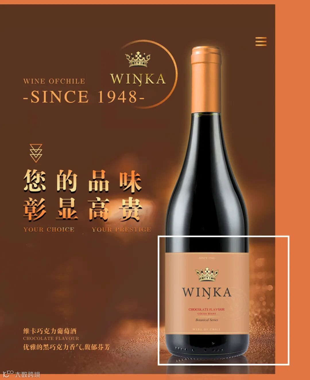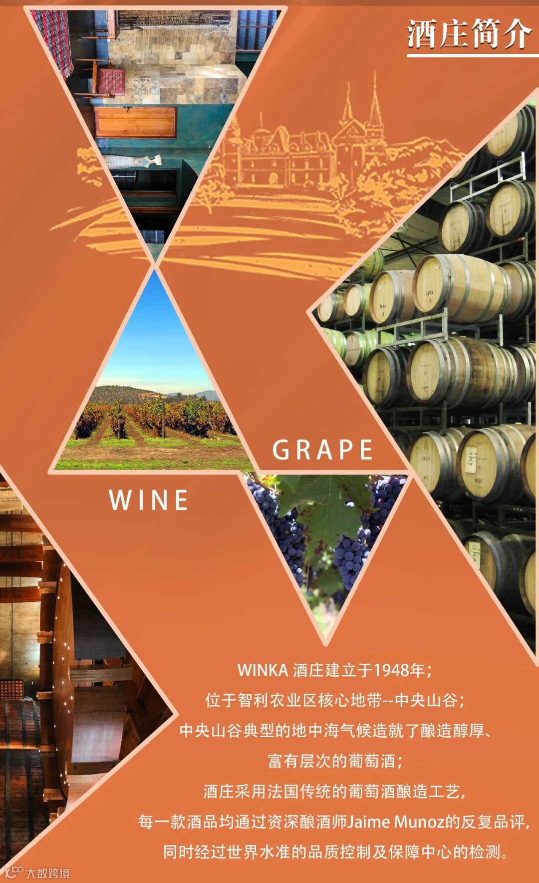 一家专注于供应优质葡萄酒的领先服务商。被国内著名葡萄酒机构INTERWIEN评选为“中国葡萄酒市场优秀进口商”之一,且连续多年被法国前十葡萄酒生产商MARRENON酒庄以及智利第二大葡萄酒出口商ANTAWARA评选为“中国区最佳合作伙伴”。