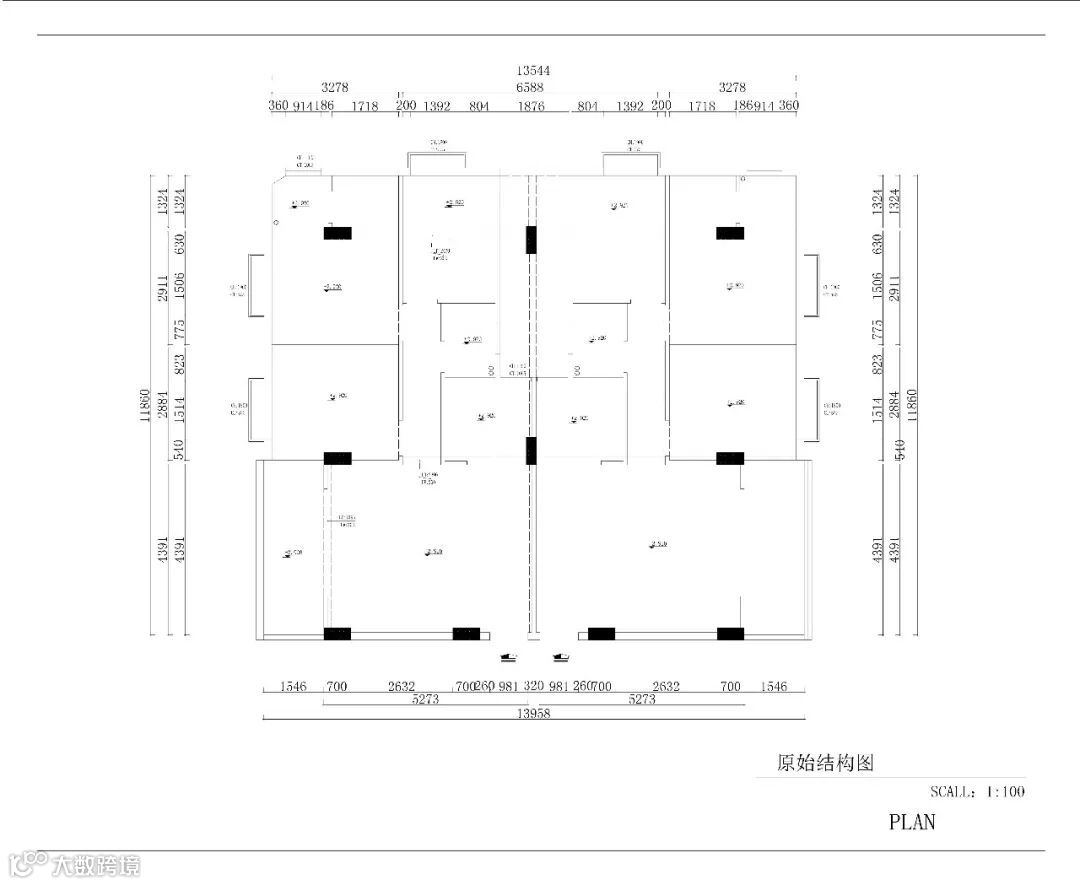 保留三个卧室及一个书房,原户型图是两套独立的房子,业主希望两套打通。并且男业主又比较注重风水,床尾一定得向客餐厅方向,梁不能压床等。