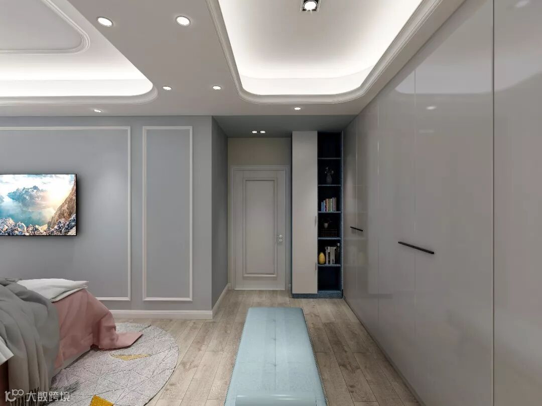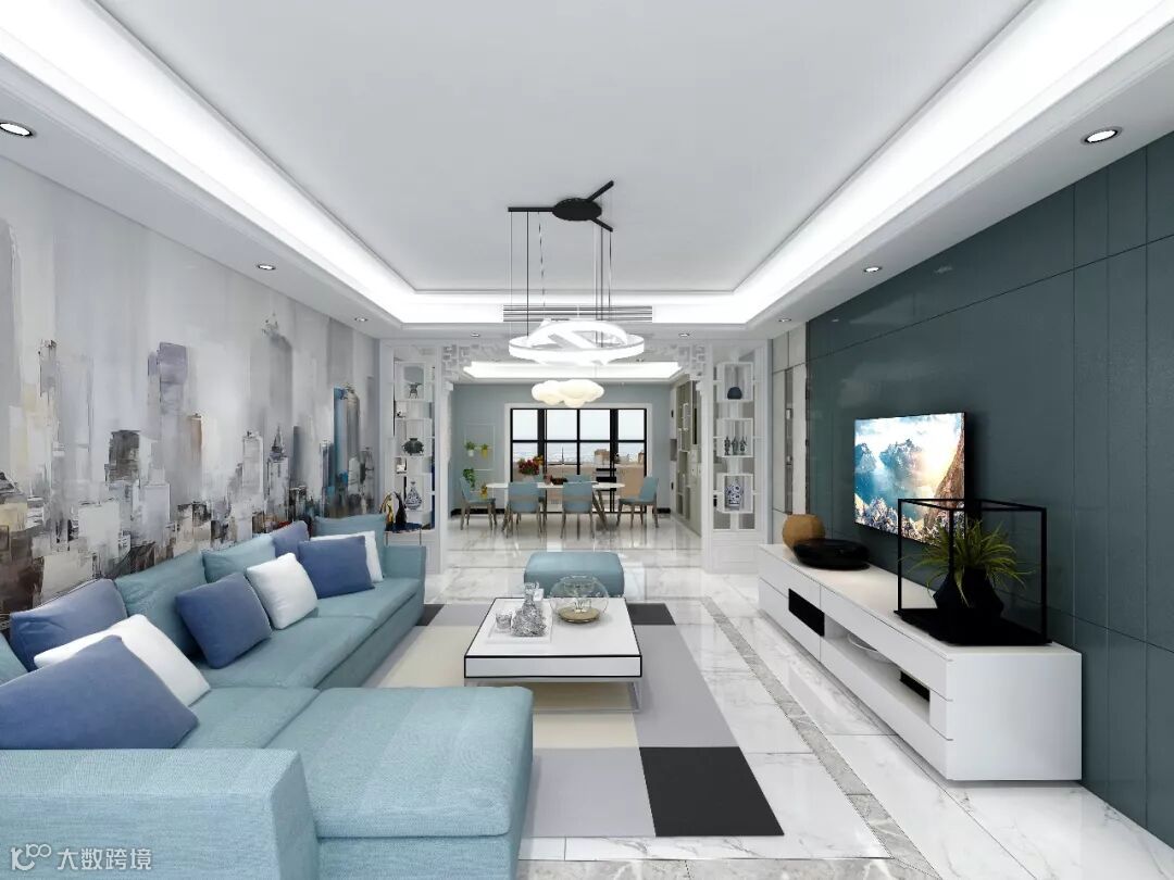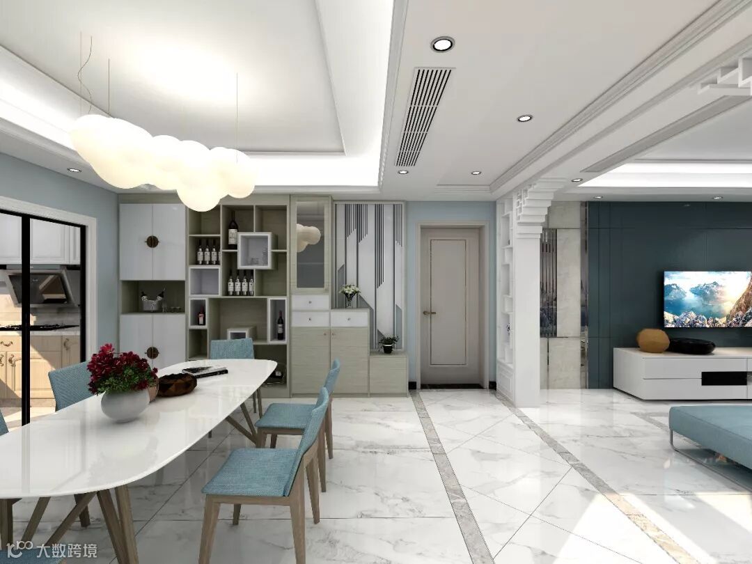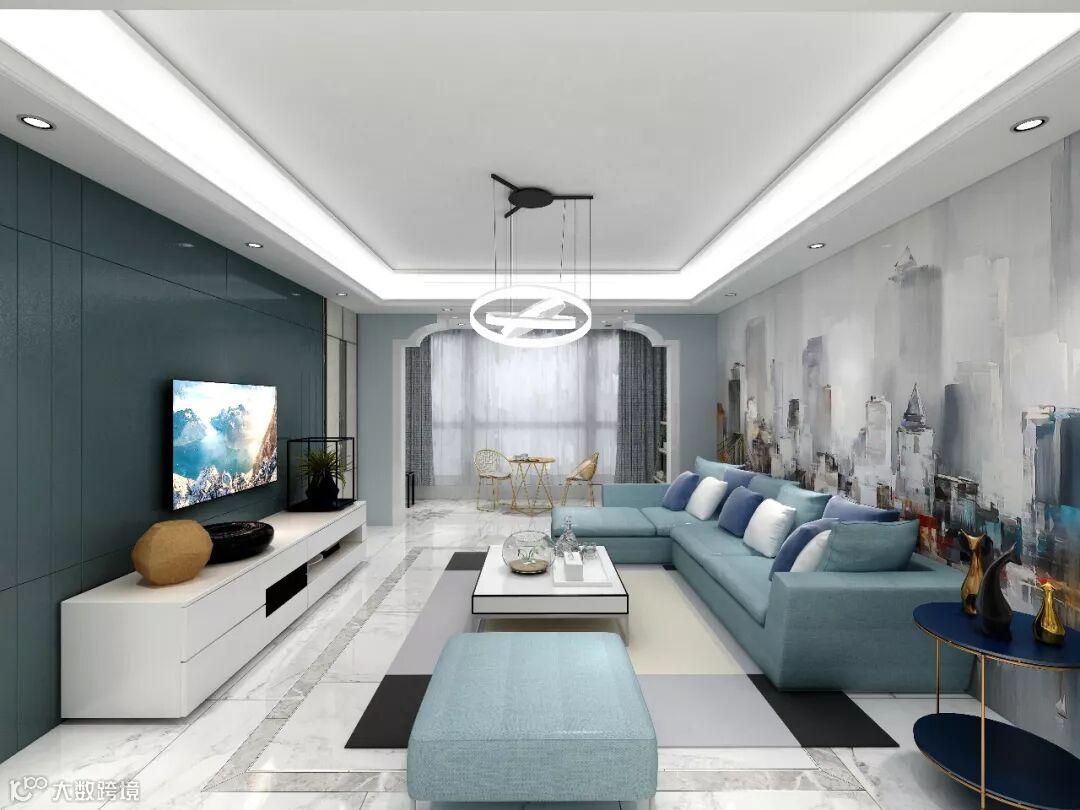 设计在满足功能于舒适的前提下,化繁为简,整体以简约明快出发,以浅蓝,木饰面,几何图形等构成现代都市质感风,将都市人的现代生活范儿打造而出,让空间表达有了不同的情绪。
