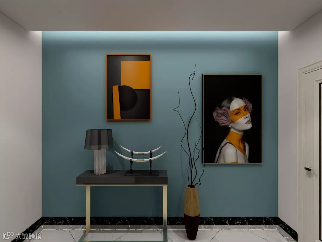 因此我们采用比较流行的灰白护墙板墙面营造整体空间,利用时尚流行的跳跃元素,传达居住者高尚精致的生活品味。