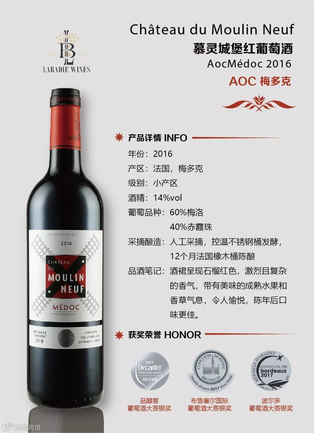 奖章数量多达100余枚,2015年的酒更获得了波尔多葡萄酒金奖。