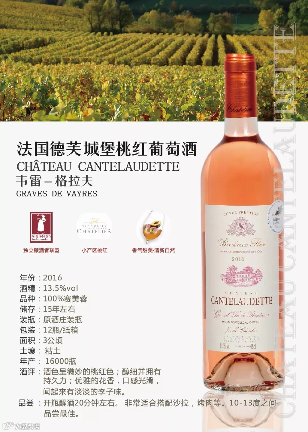 一家专注于供应优质葡萄酒的领先服务商。被国内著名葡萄酒机构INTERWIEN评选为“中国葡萄酒市场优秀进口商”之一,且连续多年被法国前十葡萄酒生产商MARRENON酒庄以及智利第二大葡萄酒出口商ANTAWARA评选为“中国区最佳合作伙伴”。