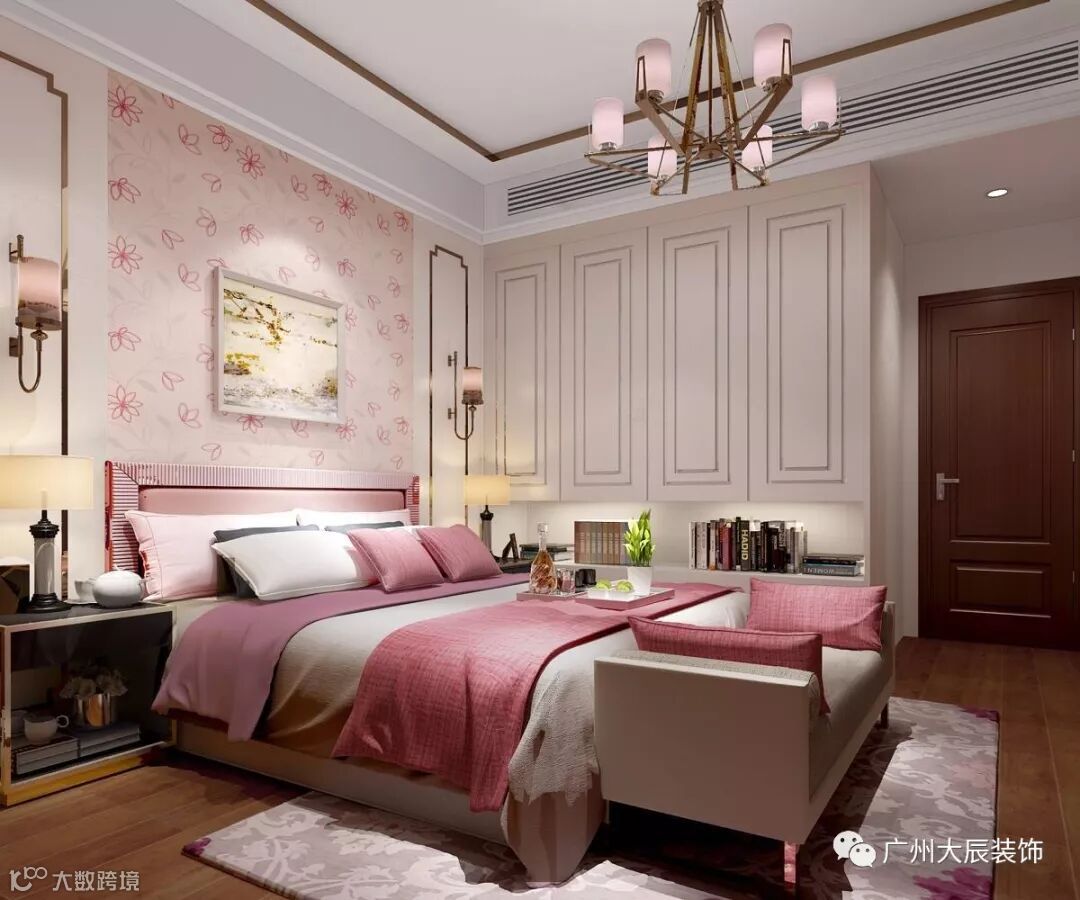 为营造当代新东方的室内空间的意境氛围加入了粉色系的设计,设计师用不同的设计方案使卧室充满着暖暖的温馨感。