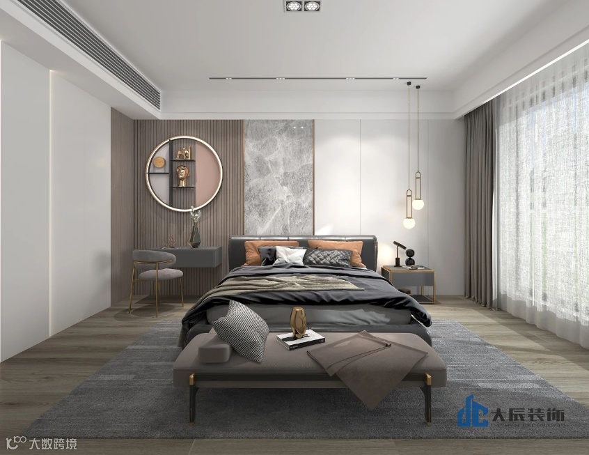 现代轻奢风格比较注重生活的质量,装饰上面会选择一些柔和的软装饰品,使得房间更加的充满着温馨感。