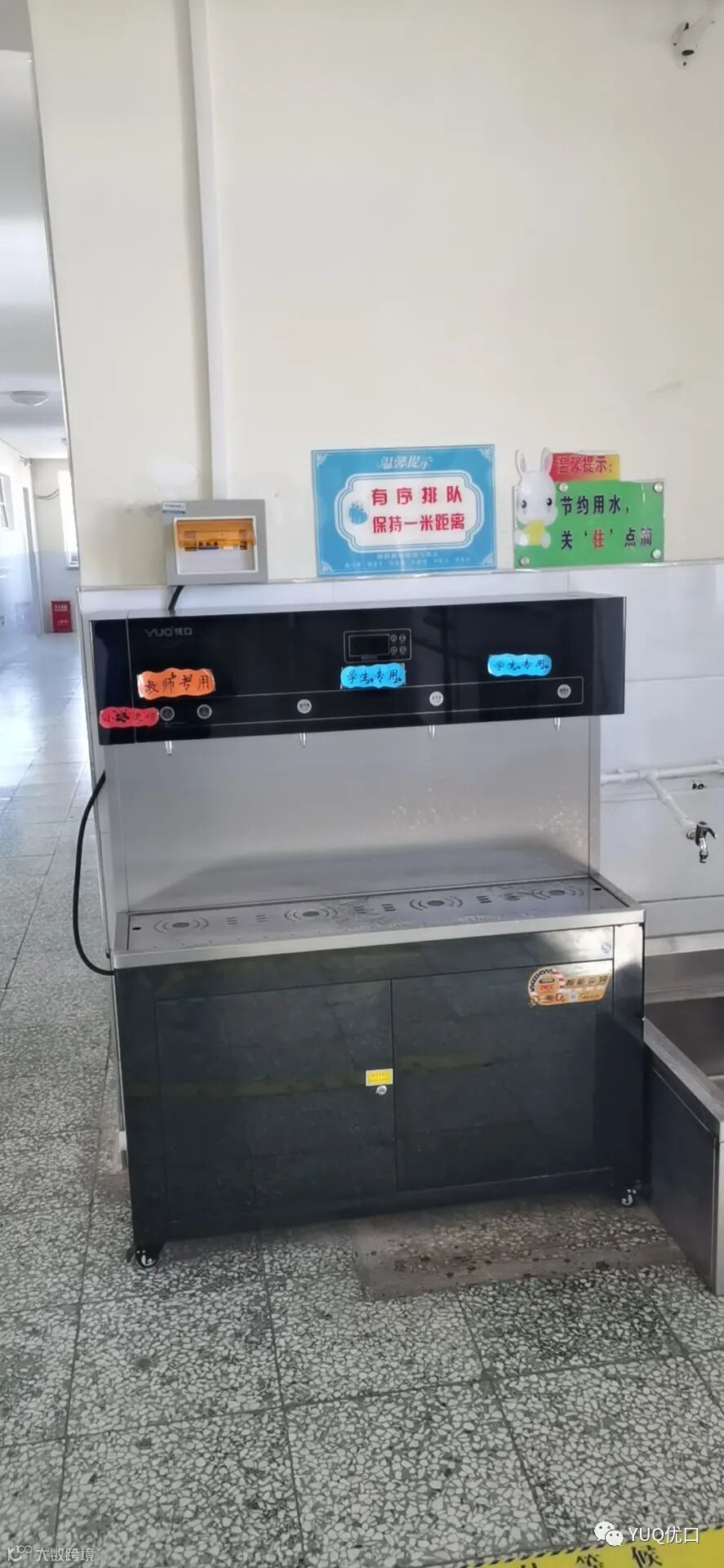 共91台优口高端节能饮水台的进驻,为孩子们和老师们带来了健康温暖的直饮水。