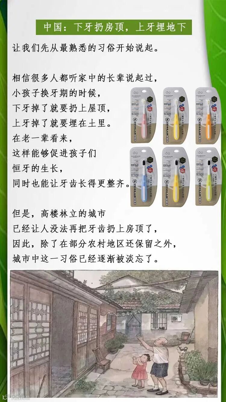 不同的换牙习俗,反映了不同文化背景下,人们对同一件事情不同的看法,但是不变的是长辈对孩子们的美好期盼。在孩子换牙前后记得使用ZennLab健儷康儿童牙膏牙刷呵护稚嫩的口腔,让孩子的牙齿茁壮成长。