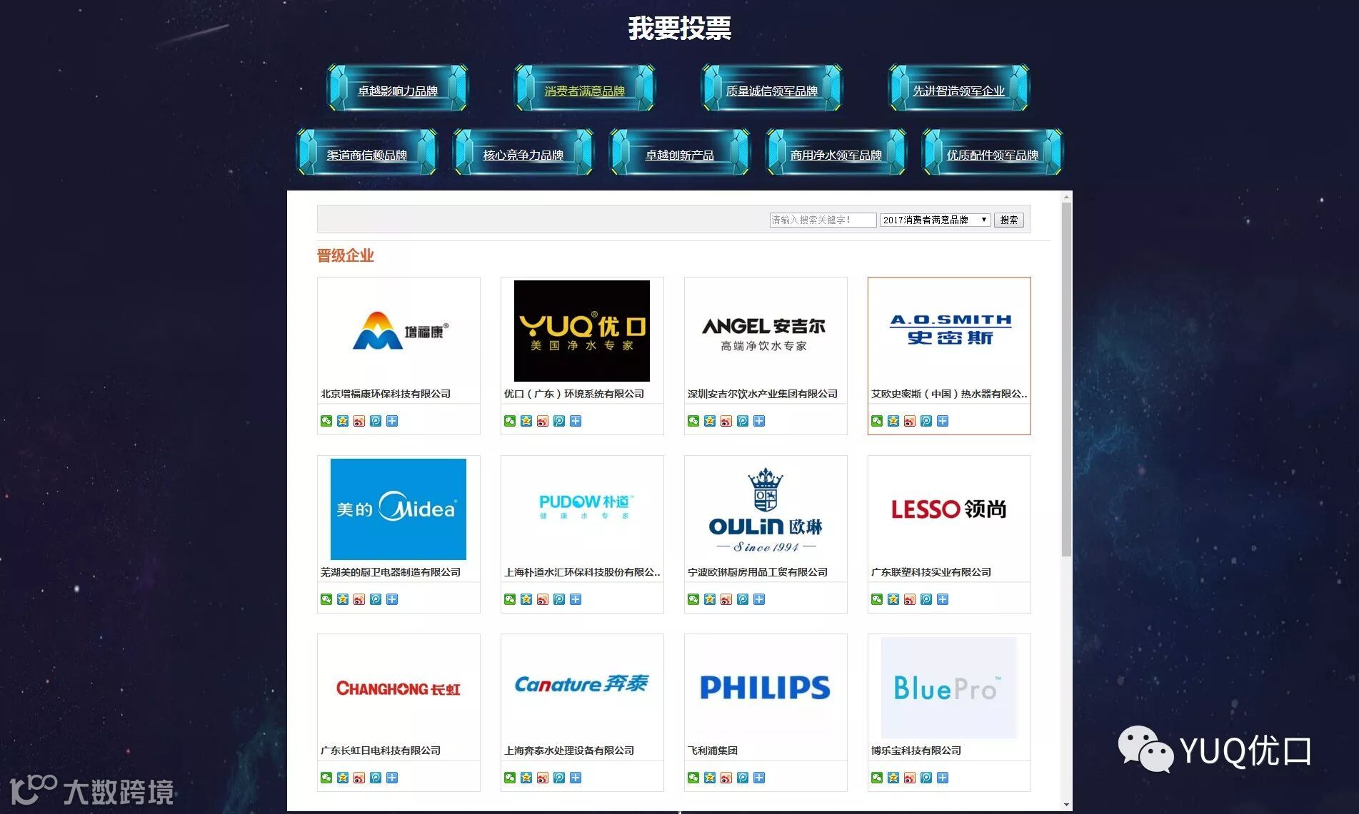 净水器作为新兴的行业,近年来发展迅速,其市场需求巨大发展前景广阔。受到众多创业者及投资人的青睐。“赢响中国”2017年中国净水产业生态大会,作为一年一度的行业标杆活动,活动意义重大而深远。其公示的榜单为经销商和消费者选择品牌提供重要数据参考支持,进而推动行业纵深发展。投票看上去只是简简单单的一次点击,但实际上却是检验品牌口碑、产品质量,是树立行业导向的重要行为。