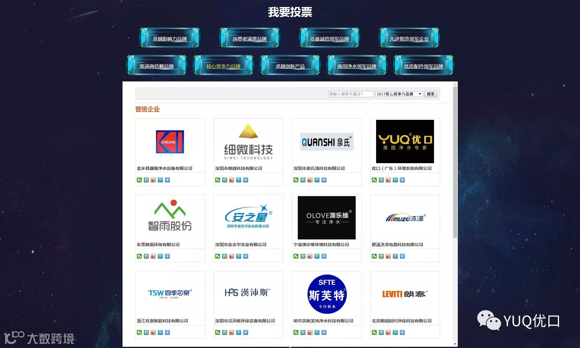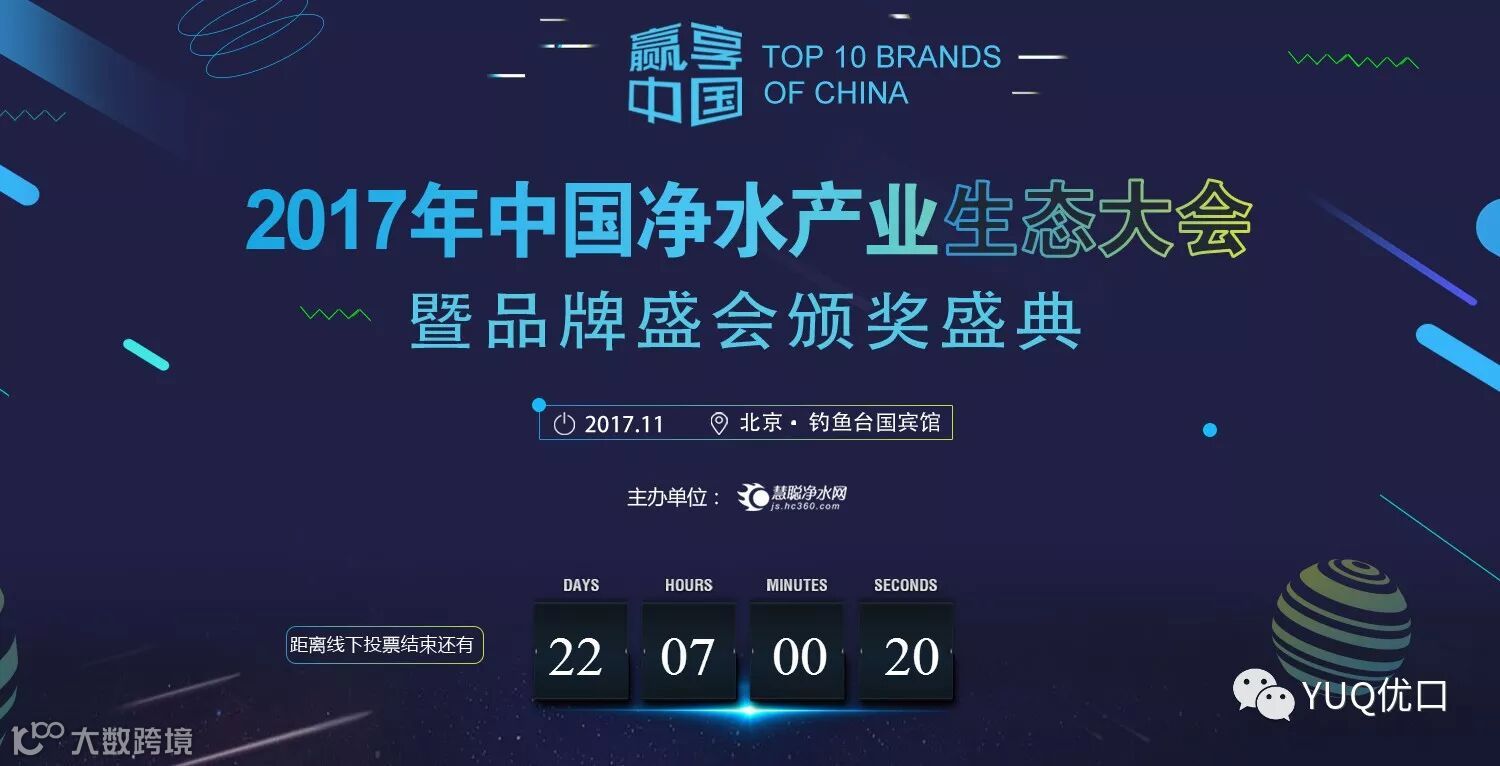 2017年8月15日由慧聪净水网主办的“赢响中国”2017年中国净水产业生态大会,品牌评选投票正式拉开序幕。此次盛会是净水行业一年一度受关注度最高、最具影响力的行业盛事,活动自8月15日启动以来受到多方关注。此次活动汇聚了1000余家净水企业参与评选,创历届新高。