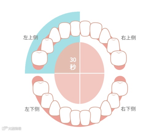 更人性化的是,它还有智能定时提醒功能,每刷30秒就会有个停顿来提醒你该换个位置刷了,中间暂停0.5秒。计时2分钟,可以把牙齿里里外外完全刷一遍。