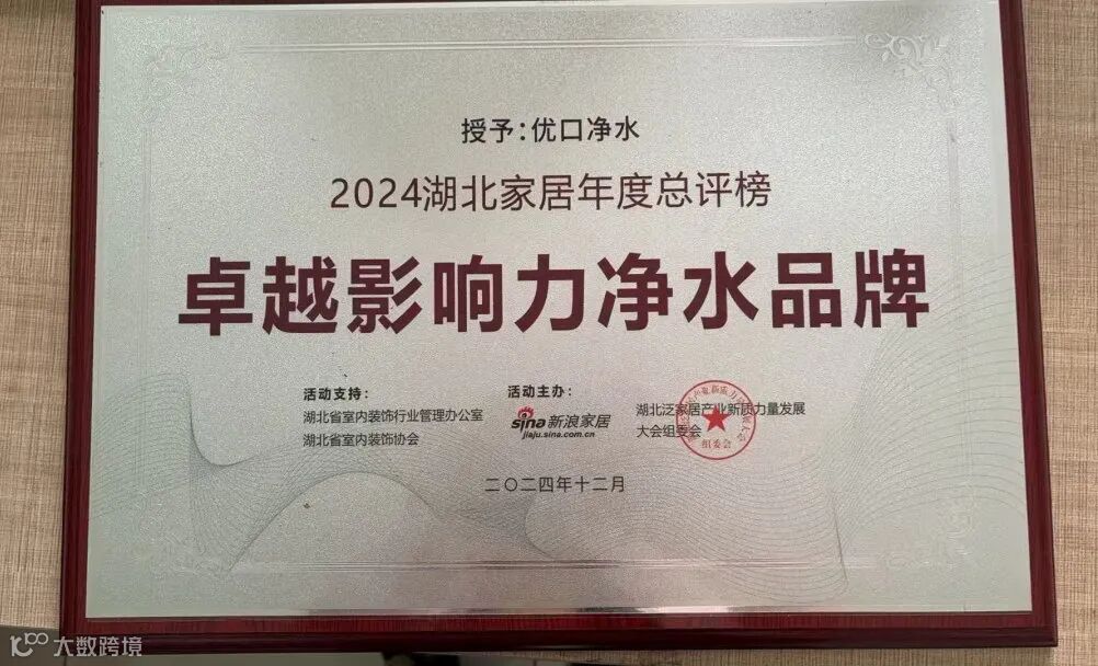 此次盛典,优口净水荣膺2024湖北家居年度总评榜 “卓越影响力净水品牌” 的奖项。