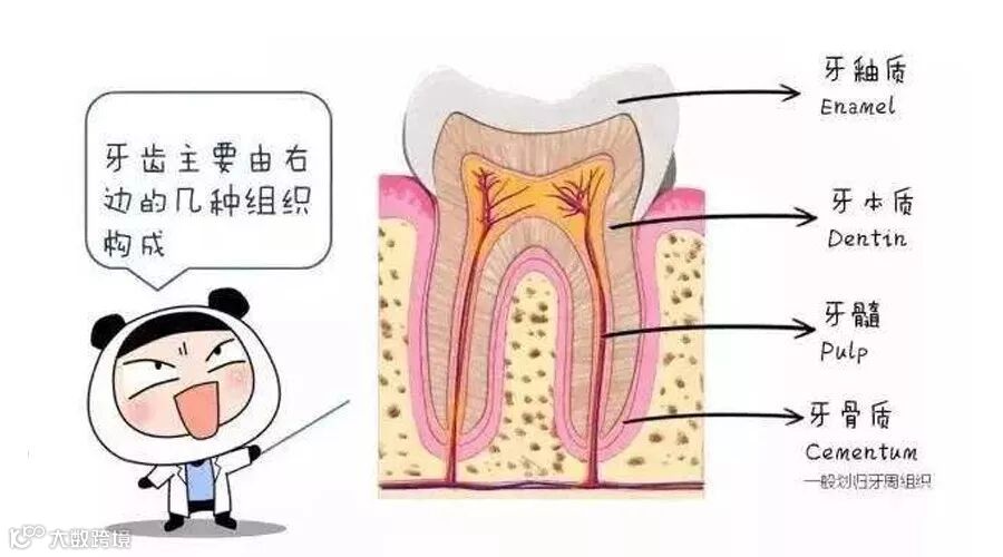牙周炎顾名思义,就是牙周组织发炎了,下面这张图助大家了解牙齿的构成: