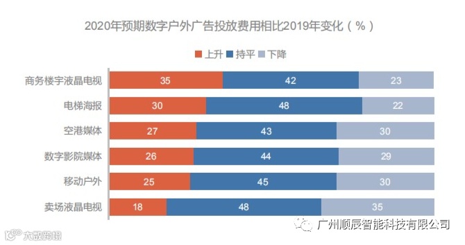 除了转化类广告以外,广告主对曝光类广告,也表现出积极的投放倾向。例如户外广告中,广告主对商务楼宇电梯广告的投放预算增长比例超过30%。另外,数字化带给户外广告更多机会,户外广告的在线化投放,带来相应的数据收集能力,这也为广告主智能化地掌握和管理投放效果建立了根本的基础。