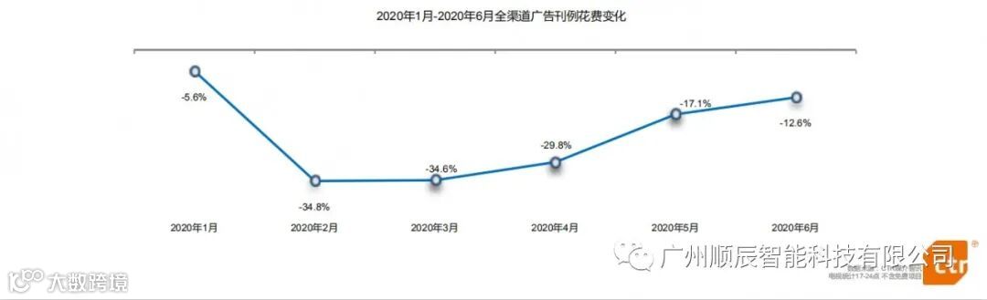 从CTR的1-6月的监测数据来看,自1月22日武汉封城开始,广告业就出现了非常大幅度的下滑。随着疫情的逐步稳定,市场也在慢慢出现转机,但整体上依然呈现负增长。