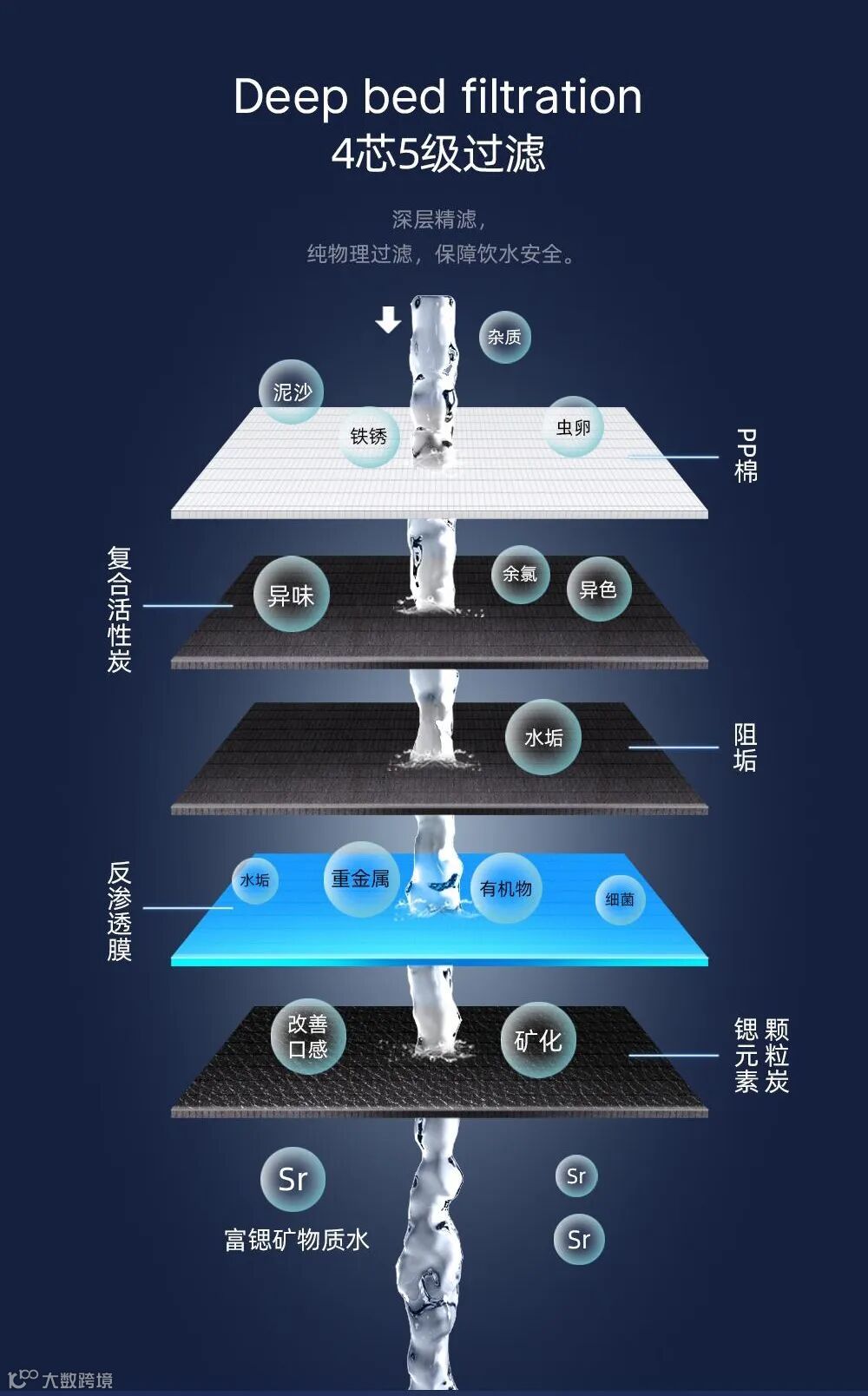 四核心五级深度过滤与矿化,纯物理精滤,安全先行后矿化健康,