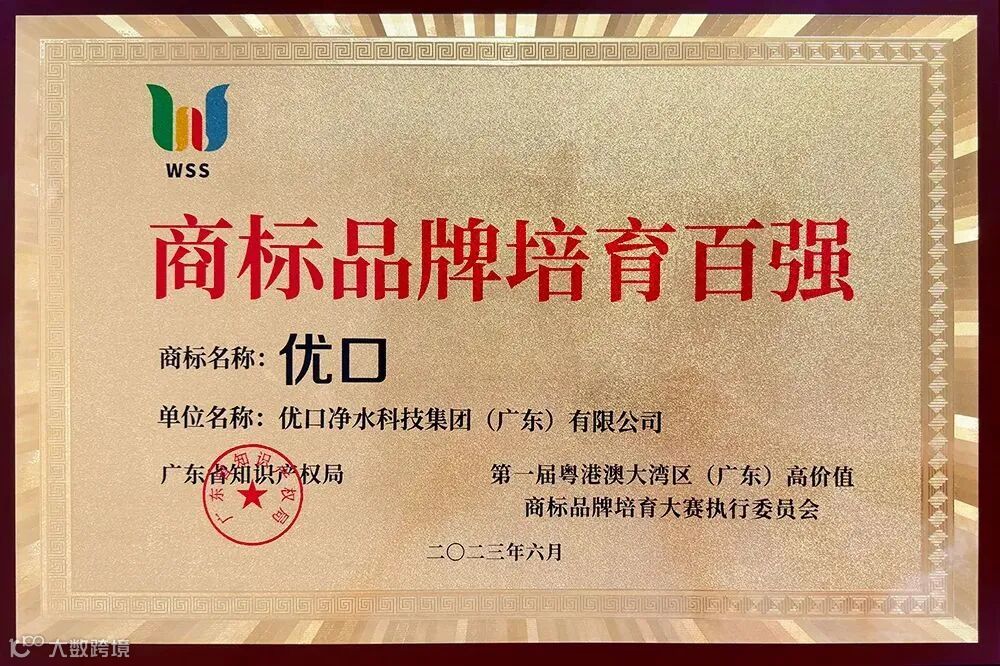 优口净水凭借特色鲜明、竞争力强、市场信誉好、产品和服务价值高的商标品牌,被授予“商标品牌培育百强”荣誉证书。此项目具有创新性、专业性、示范性等主要特点,树立商标品牌培育标杆典型,讲好商标品牌培育故事。