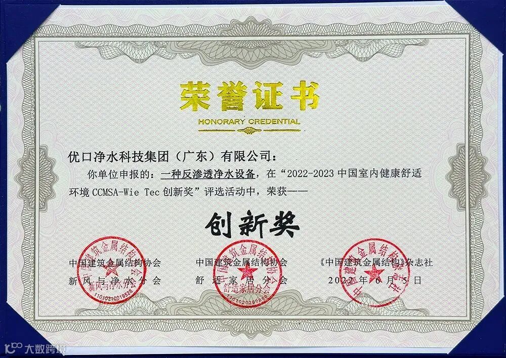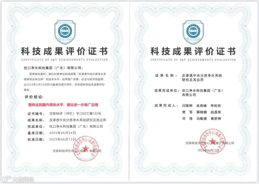 2023年6月,优口净水荣获”科学技术成果评价证书“,彰显了优口过硬的产品品质、强大的创新研发能力及品牌影响力,印证了优口在推动高质量发展进程中取得的丰硕成果。