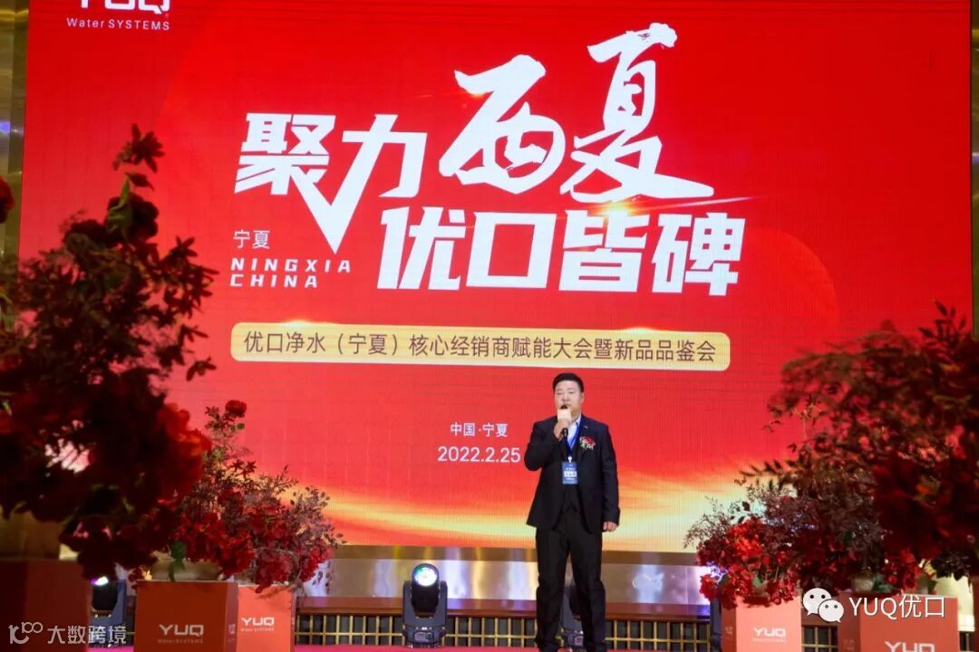 黄庆羽董事长表示:根据优口净水2022《3750计划》指示,优口已在全国成立了7大战区,用一年的时间在全国打造三个标杆市场,其中宁夏就是我们今年的三大标杆之一,集团将集中所有优势资源和兵力,以品牌端通过央视等媒体广告、高铁高速广告为终端引流,通过抖音小红书视频号等新媒体为大家线上种草,通过线下招商会、联动会、品鉴会能精准爆破,以及工程项目全程陪办等等海陆空多维度赋能,协助大家开拓市场提升销量,让高端净水生意不再难做。最后黄董再次祝贺大会盛大召开,并祝优口宁夏分公司业绩长虹!
