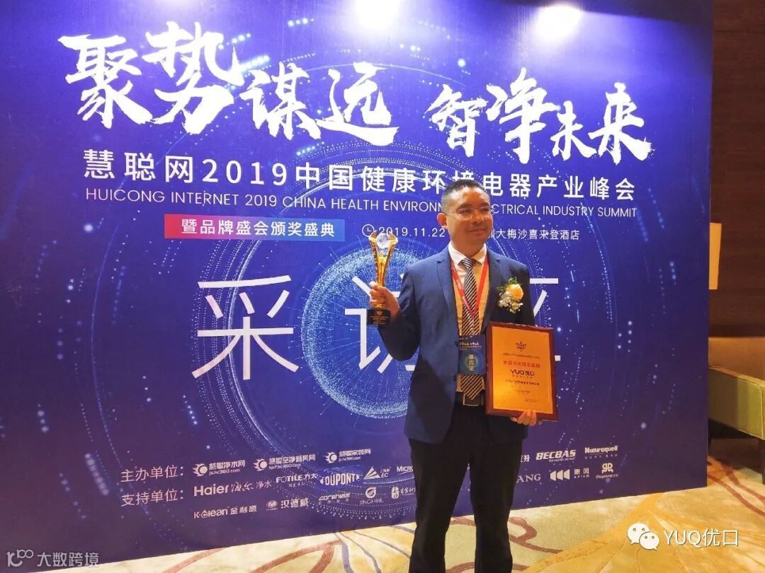 热烈庆祝YUQ优口荣获2019中国健康环境电器产业峰会【全屋净水领军品牌】奖项!