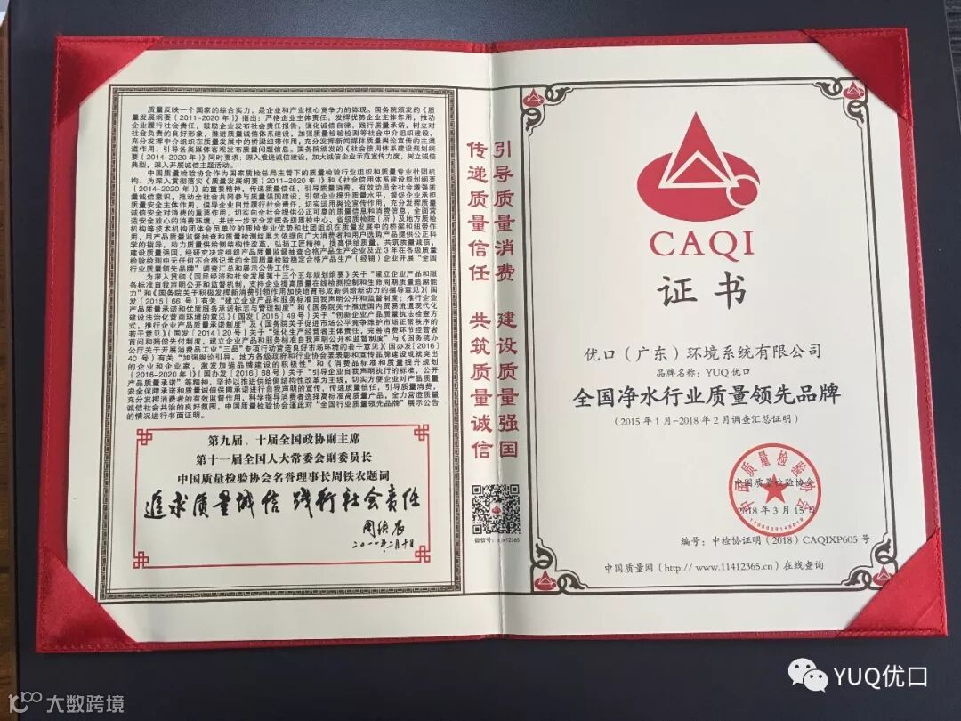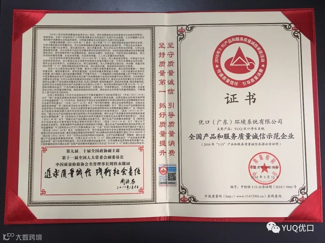 全国净水行业质量领先品牌,全国产品和服务质量诚信示范企业,荣誉