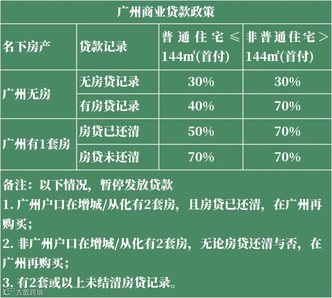 首先,我们先来了解一下,广州的商业贷款限贷政策↓