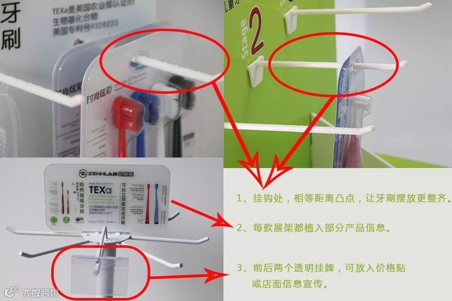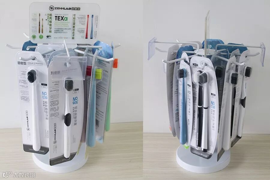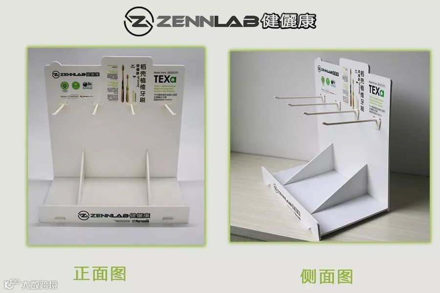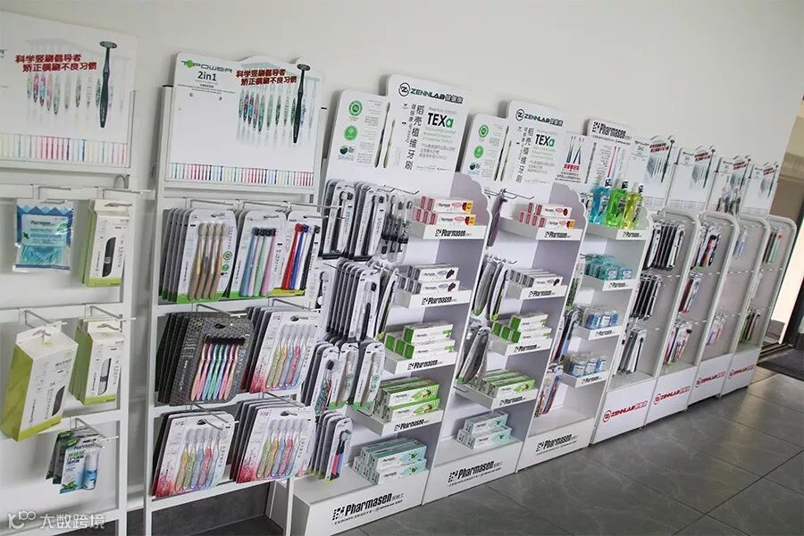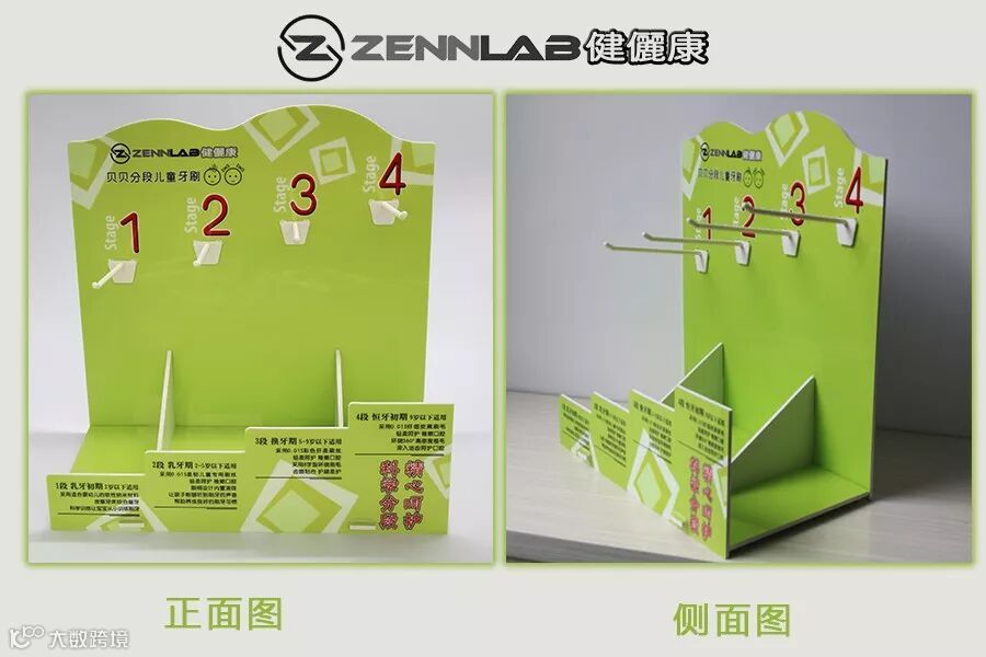 根据市场需求,也根据实际情况出发,我们新增了很多终端物料,有母婴渠道用的,超市收银台用的,旋转的等等展架,让顾客更直观地观看ZennLab健儷康牙刷。