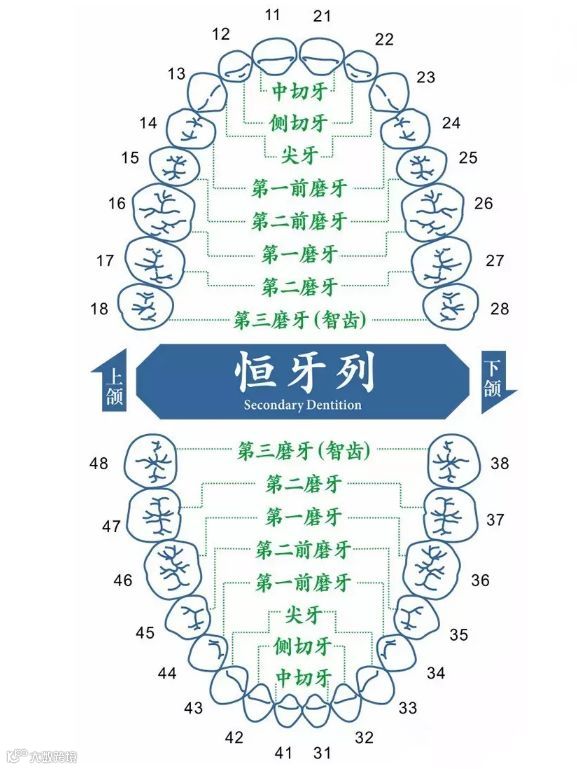 恒牙是人类的第二副牙齿,是陪伴我们到老的牙齿。通常28-32颗。从6岁左右乳牙就离开主人,随之被恒牙代替。