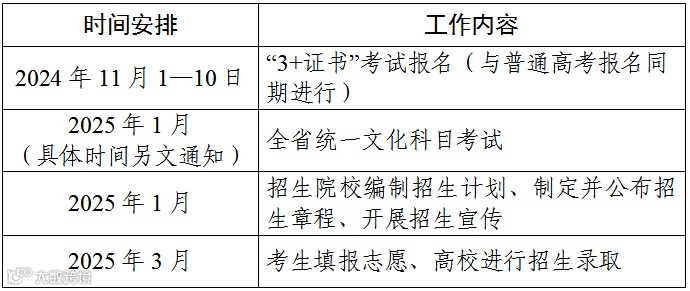 各院校2025年“3+证书”考试招生计划原则上不少于2024年。