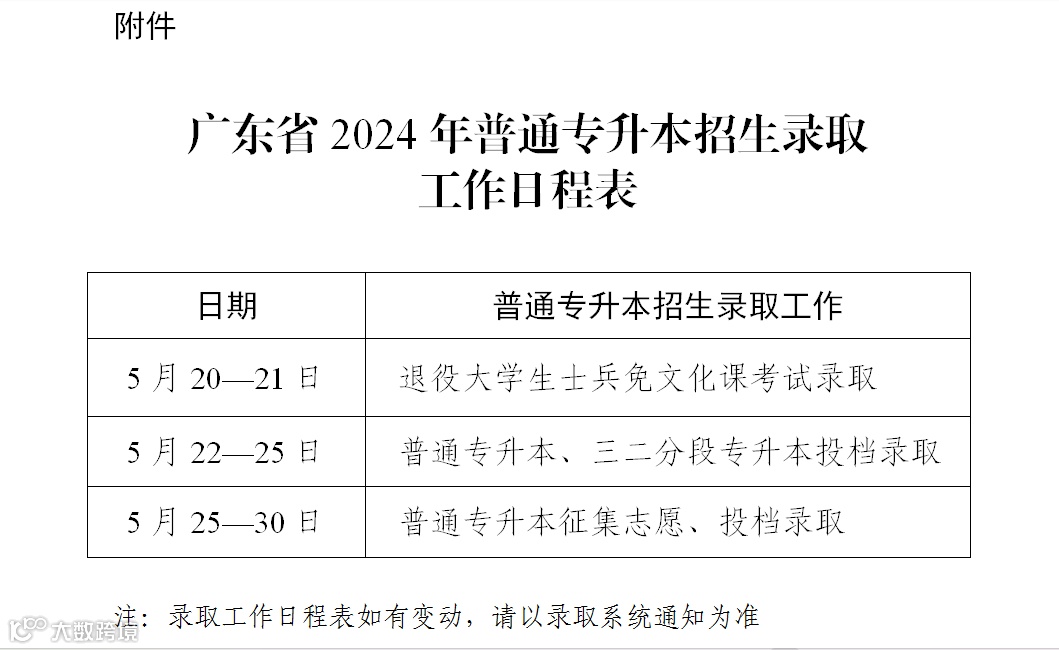 我省普通专升本招生录取工作(含三二分段转段考核、退役大学生士兵免文化课考试,下同)将于5月20日至30日进行。为做好广东省2024年普通高等学校专升本招生录取工作,现将有关事项通知如下。