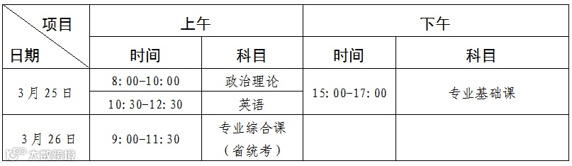 答:2023年普通专升本考试科目共设4门,分别为2门公共课、1门专业基础课、1门专业综合课。公共课、专业基础课每科考试时间120分钟、卷面满分值100分;专业综合课每科考试时间150分钟、卷面满分值200分。
